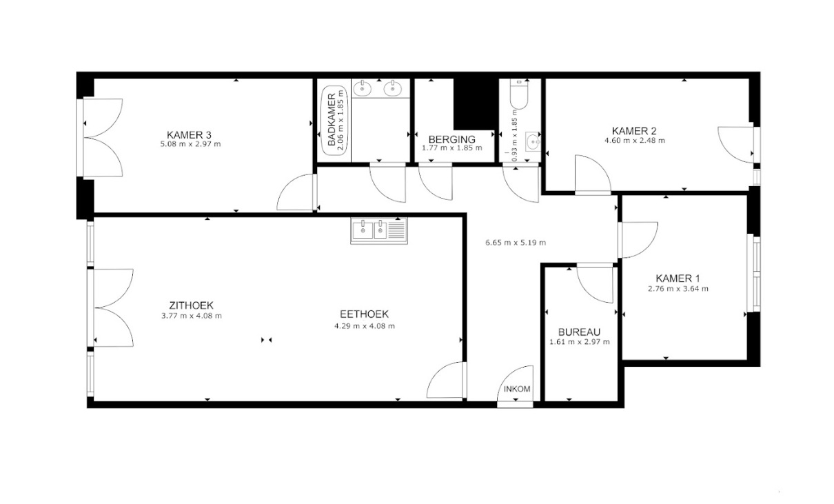 Het appartement beschikt over drie slaapkamers met een oppervlakte van ca. 15 m², 11 m² en 10 m², ideaal voor gezinnen, thuiswerk of extra hobbyruimte. Daarnaast is er een extra polyvalente ruimte die perfect kan dienen als bureau, dressing of berging.